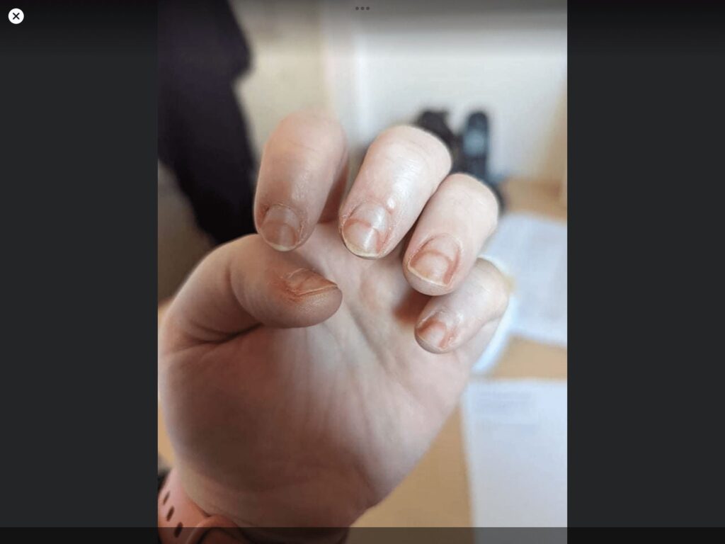 Another condition is Periungual desquamation. The symptom looks very similar to acute onycholysis when nail plates detach from the nail bed. This is also a sign of very severe COVID among adults recovering from the COVID multisystemic inflammatory syndrome.