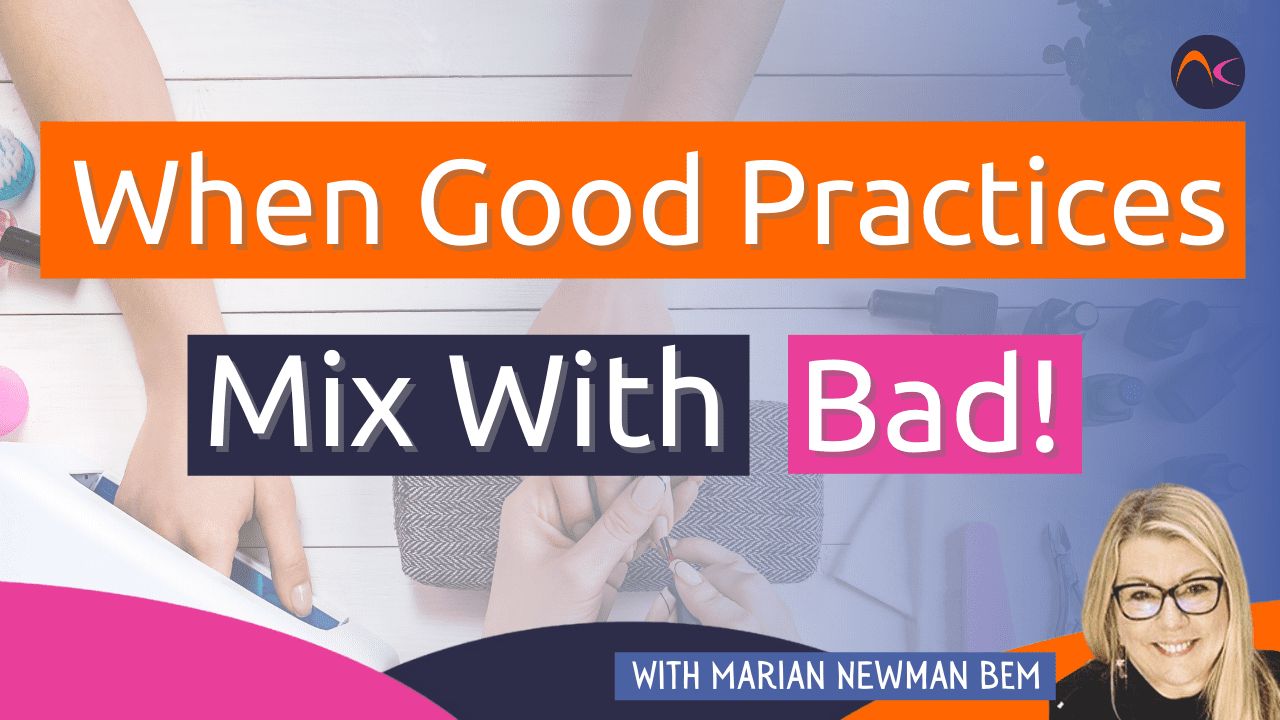 Así pues, la "buena práctica" es utilizar un aceite para uñas; la "mala práctica" es no asegurarse absolutamente de que no queda monómero en la piel.