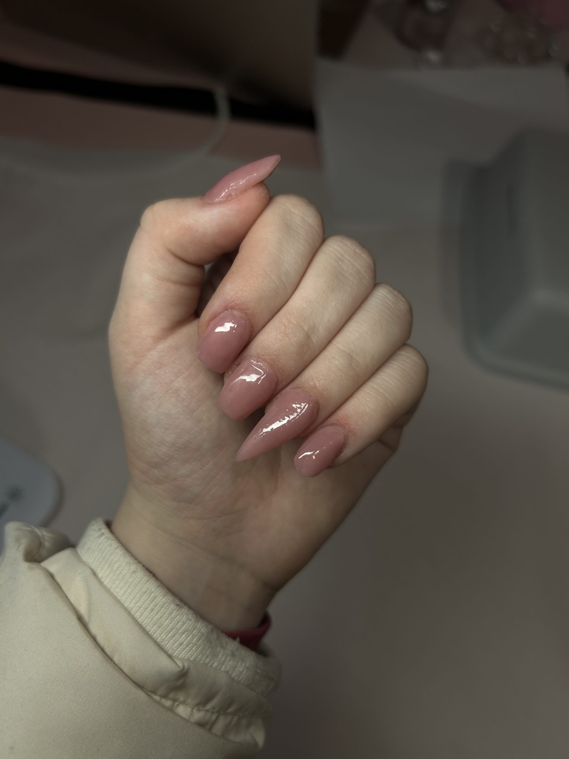 EMMA DILLON – natural BIAB overlayEMMA DILLON - natural BIAB overlay created by Penny Barns, Using BIAB ALL IN ONE CLEAR for base and build with TGB colour cashmere . Styled in Flat nail art representing Minimalistic. These Long - Coffin shaped nails are crafted using the Builder system and are coloured Pink.